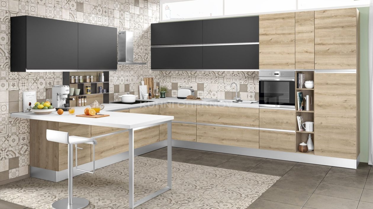 Так рождается кухня, комбинированная с двумя цветами: ни один элемент, не доминирует, но каждый играет роль. Один цвет формирует фон, другой — выделяет зоны, фасады или рабочие области. Такой подход помогает избежать однообразия и делает интерьер объёмным.