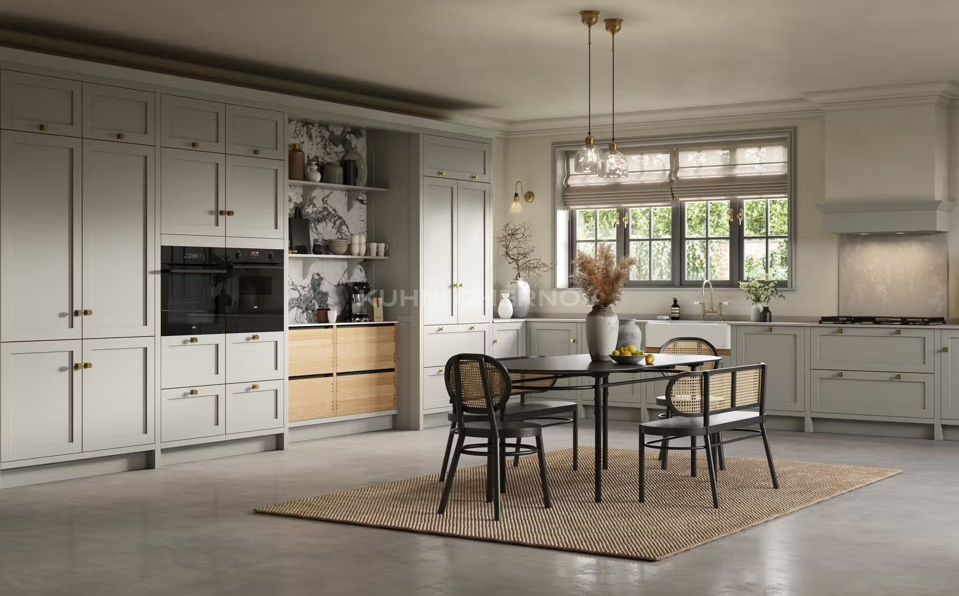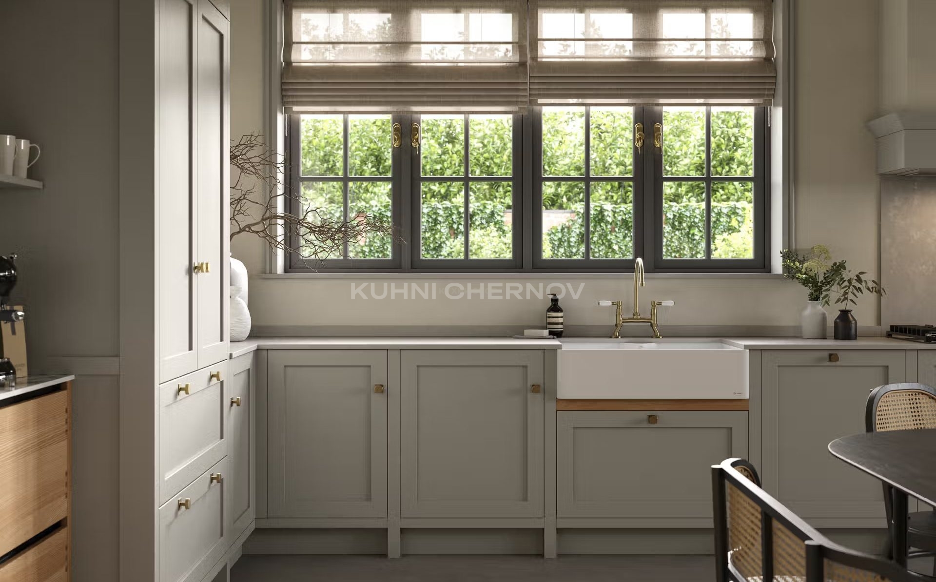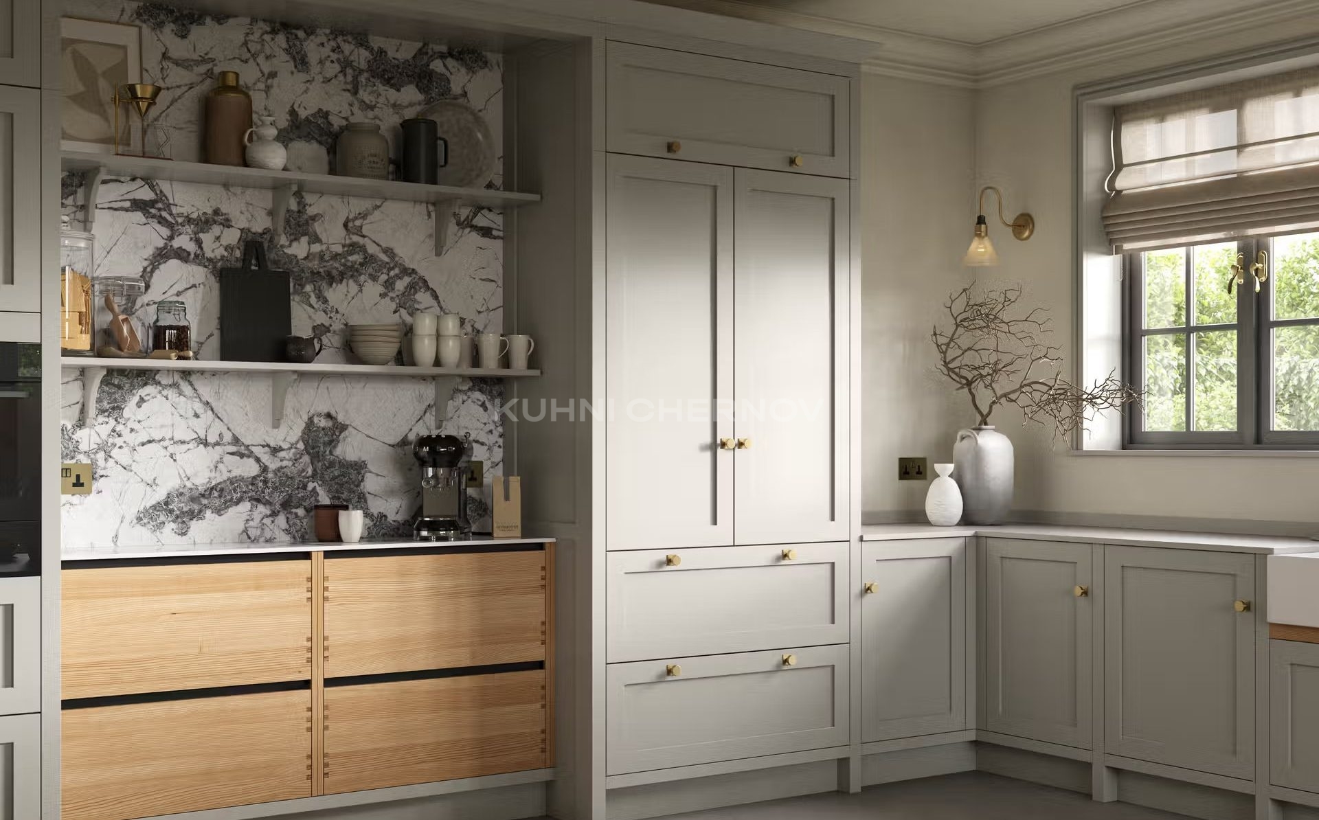 Фасады изготавливаются из МДФ толщиной 19 или 22 мм, проходят многоступенчатую окраску и последующую защитную обработку. Поверхность устойчива к влаге, царапинам и выгоранию, а варианты отделки — матовая, глянцевая или суперматовая — позволяют подобрать оптимальное решение под интерьер.