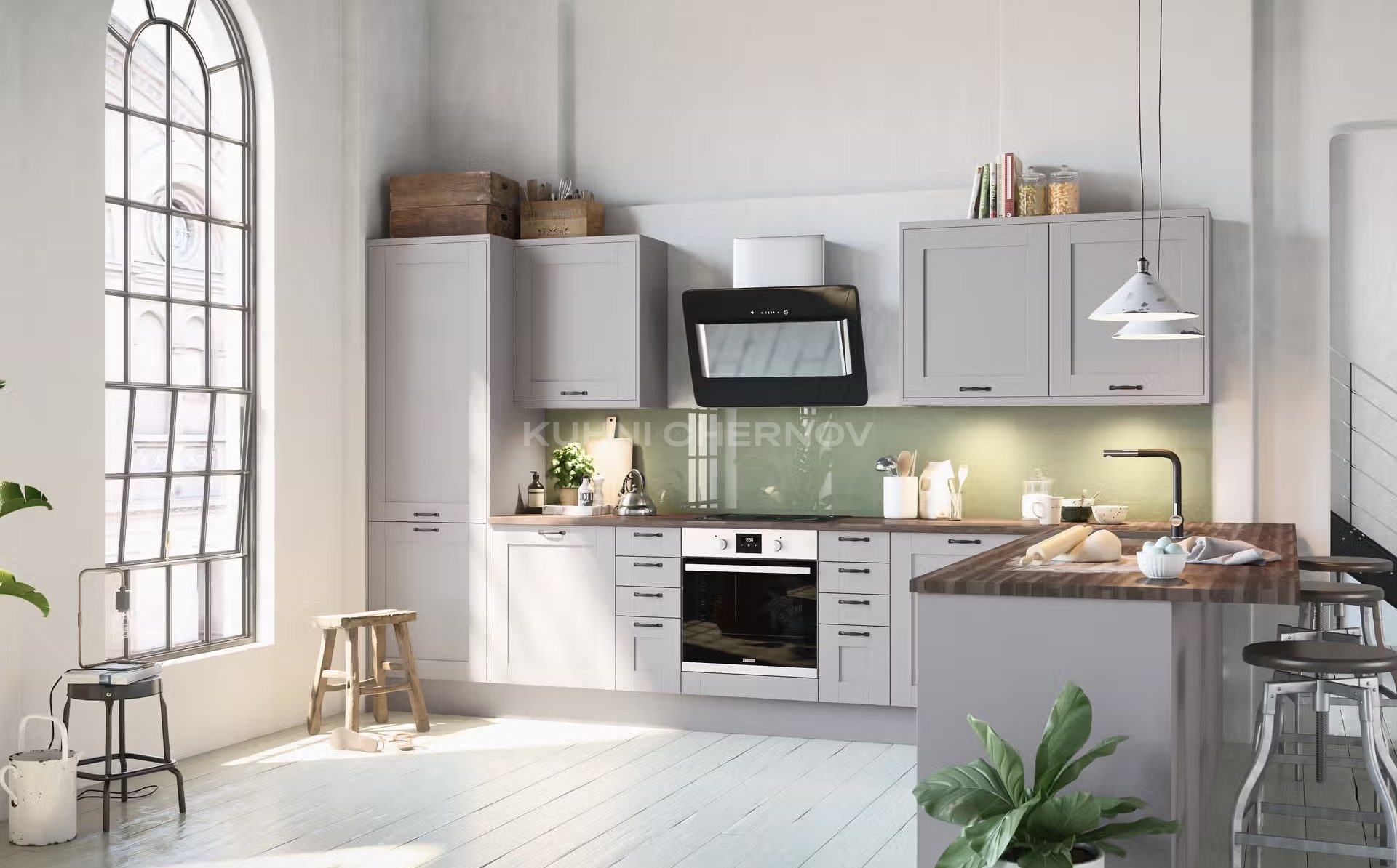 Кантина — кухня в стиле лофт, сочетающая брутальность индустриального дизайна с современными технологиями и комфортом. Фасады выполнены из МДФ, окрашенного в несколько слоёв с последующим нанесением прочного лака.