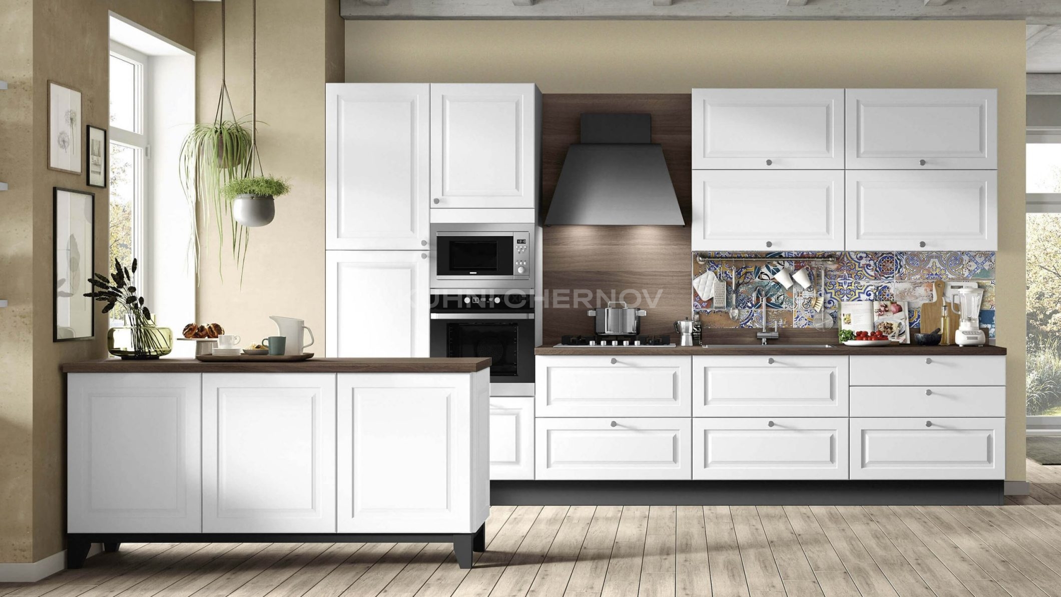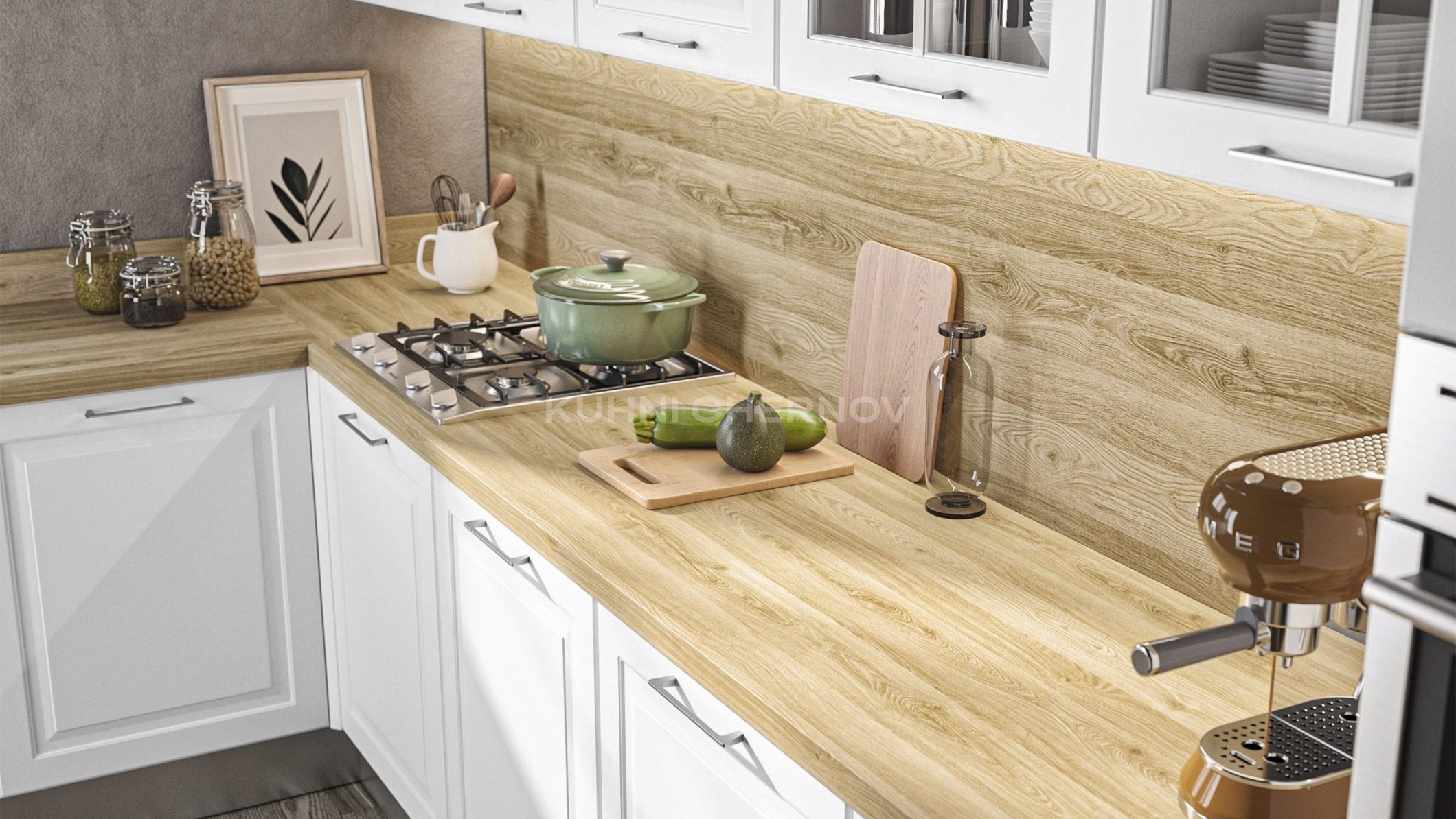 Корпуса кухни изготовлены из ЛДСП ведущих производителей и могут быть выполнены в разных цветовых решениях. Кухня комплектуется качественной фурнитурой по вашему выбору — от надёжных петель до ящиков с доводчиками и функциональной внутренней оснастки.