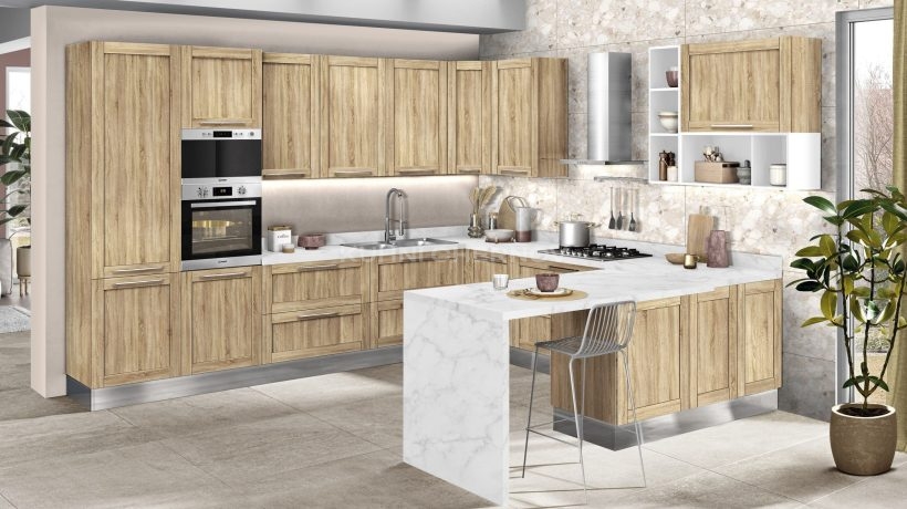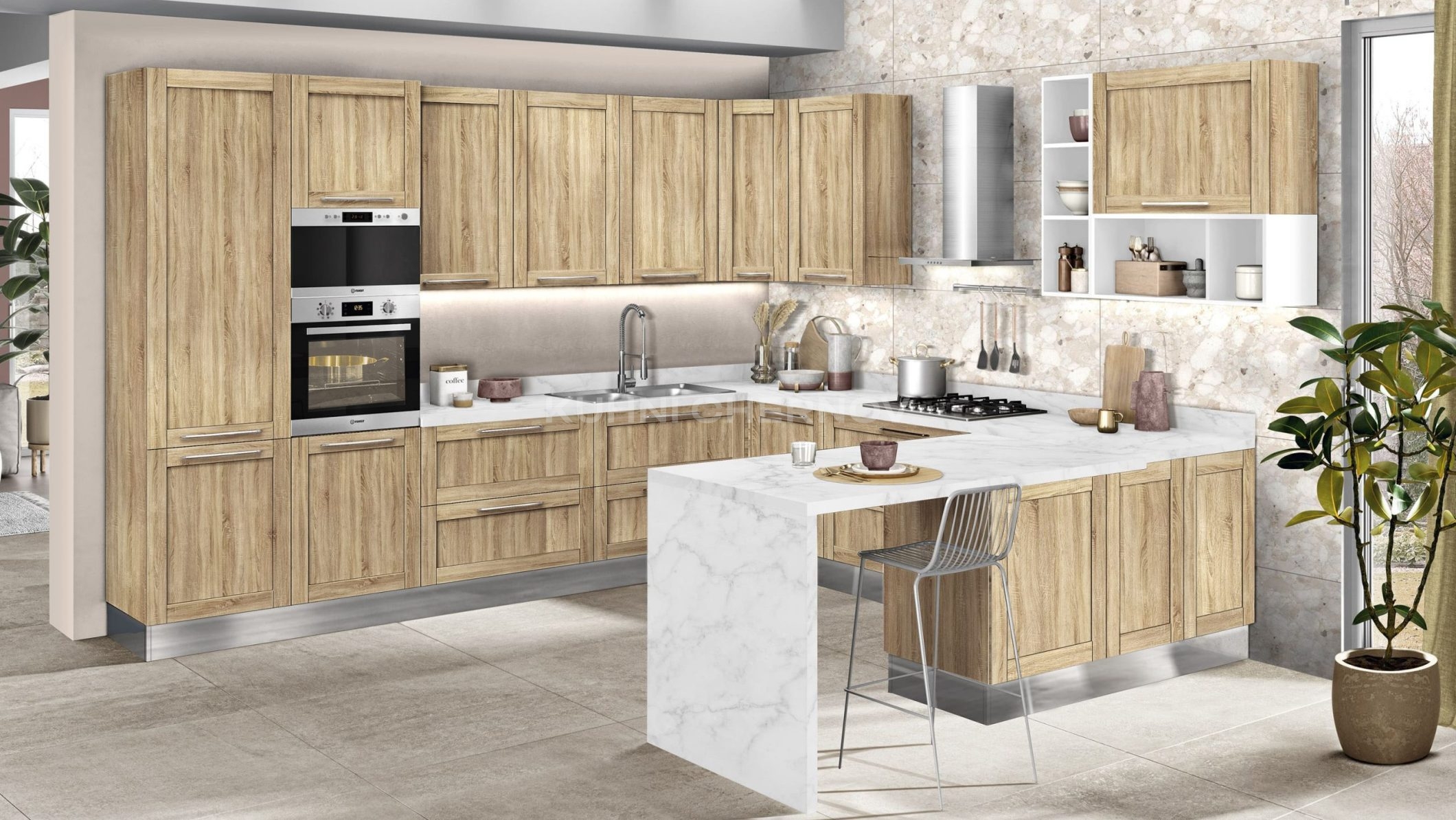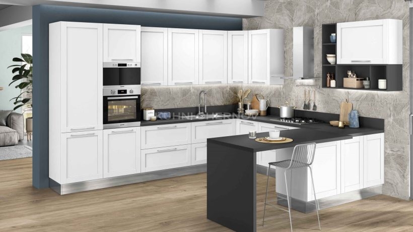 Корпуса кухни изготовлены из ЛДСП ведущих производителей и могут быть выполнены в разных цветовых решениях. Кухня комплектуется качественной фурнитурой по вашему выбору — от надёжных петель до ящиков с доводчиками и функциональной внутренней оснастки.