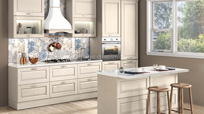 Кассиана — кухня в элегантной классике, выполненная из прочного и практичного термопластика, нанесённого на плиты МДФ. Термопластик покрывает фасады и дверцы, обеспечивая гладкую, износостойкую поверхность с чёткой фрезеровкой и благородным блеском.