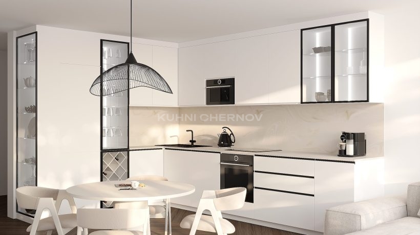 Кухня комплектуется петлями с доводчиками Blum, Boyard или GTV, ящиками полного выдвижения с системой soft close, а также дополнительной фурнитурой: бутылочницами, подъёмниками, подсветкой и внутренними аксессуарами.