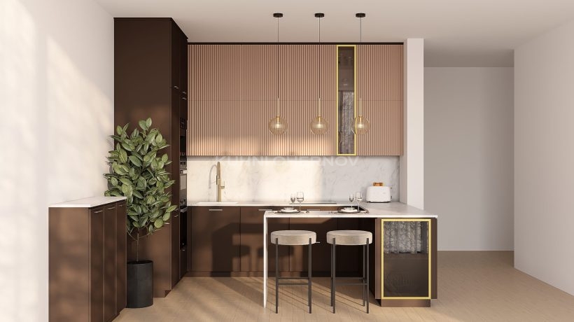 Кухня комплектуется современной фурнитурой от надёжных брендов, таких как Blum, Boyard, GTV и др. Вы можете выбрать систему открывания, доводчики, тип ящиков и внутренние механизмы под индивидуальные задачи и бюджет.