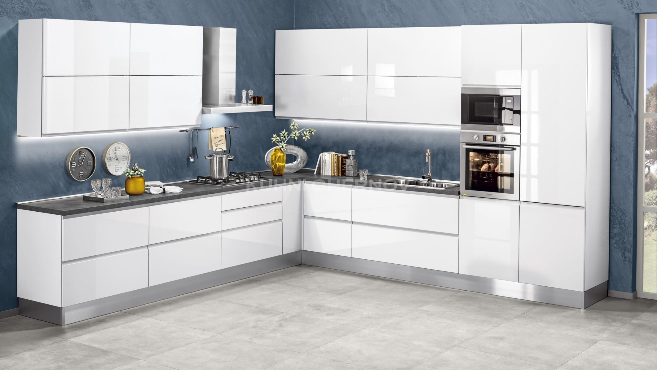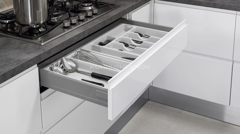 Кухня комплектуется современной фурнитурой от надёжных брендов, таких как Blum, Boyard, GTV и др. Вы можете выбрать систему открывания, доводчики, тип ящиков и внутренние механизмы под индивидуальные задачи и бюджет.