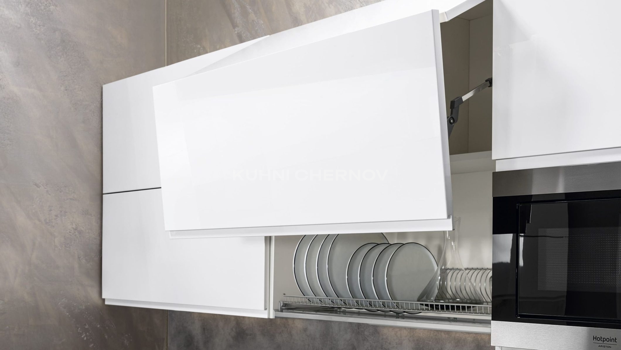 Кухня Лоретта изготовлена из МДФ толщиной 19 и 22 мм, покрытого прочной и эстетичной эмалью. Такая технология обеспечивает идеально гладкую поверхность, устойчивую к воздействию влаги и ультрафиолета, а также позволяет реализовать сложные формы — от гладких фасадов до рельефных элементов.