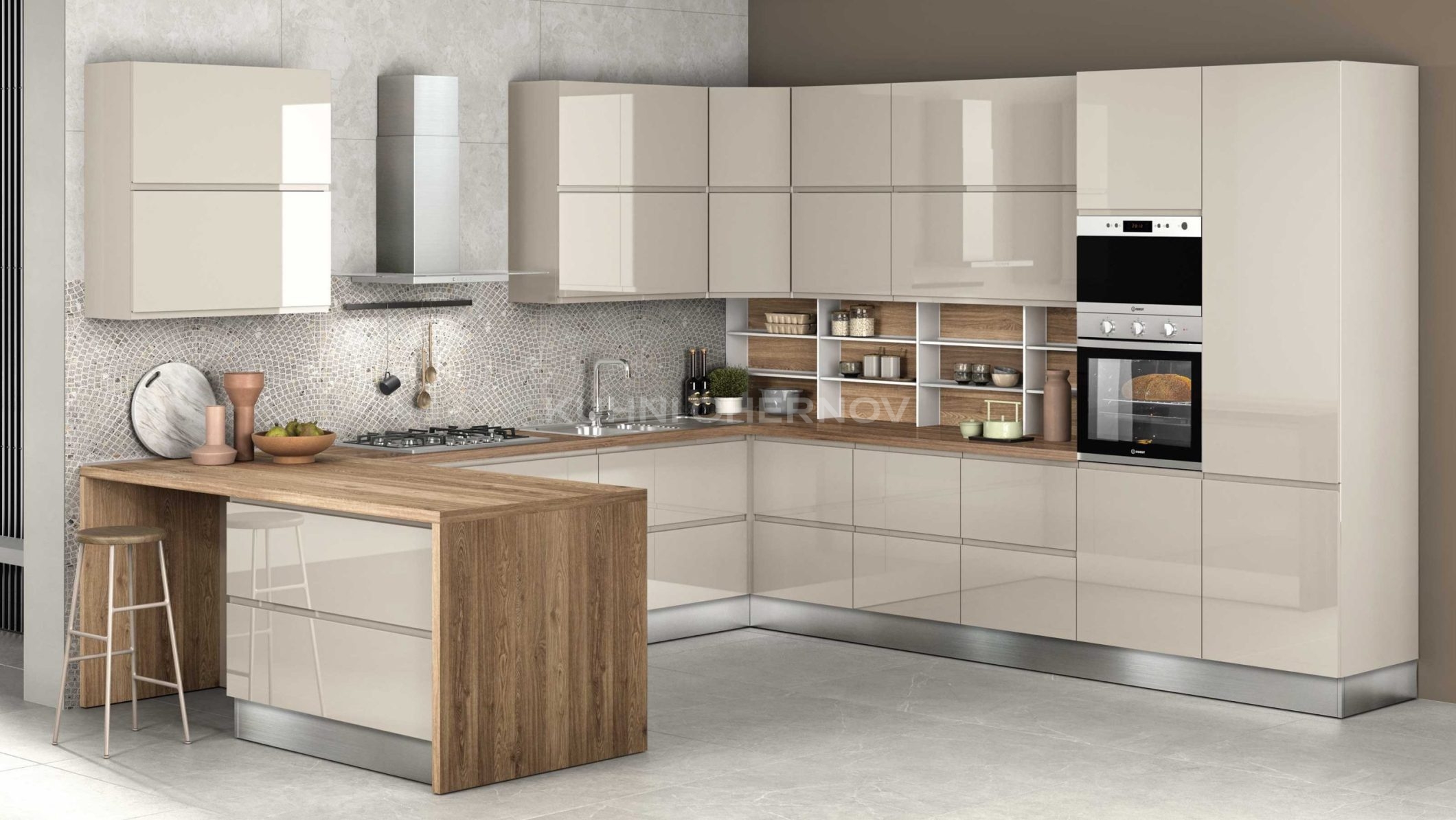 Кухня комплектуется современной фурнитурой от надёжных брендов, таких как Blum, Boyard, GTV и др. Вы можете выбрать систему открывания, доводчики, тип ящиков и внутренние механизмы под индивидуальные задачи и бюджет.