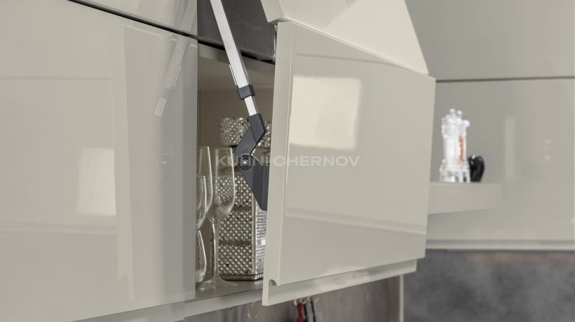 Кухня Лоретта изготовлена из МДФ толщиной 19 и 22 мм, покрытого прочной и эстетичной эмалью. Такая технология обеспечивает идеально гладкую поверхность, устойчивую к воздействию влаги и ультрафиолета, а также позволяет реализовать сложные формы — от гладких фасадов до рельефных элементов.