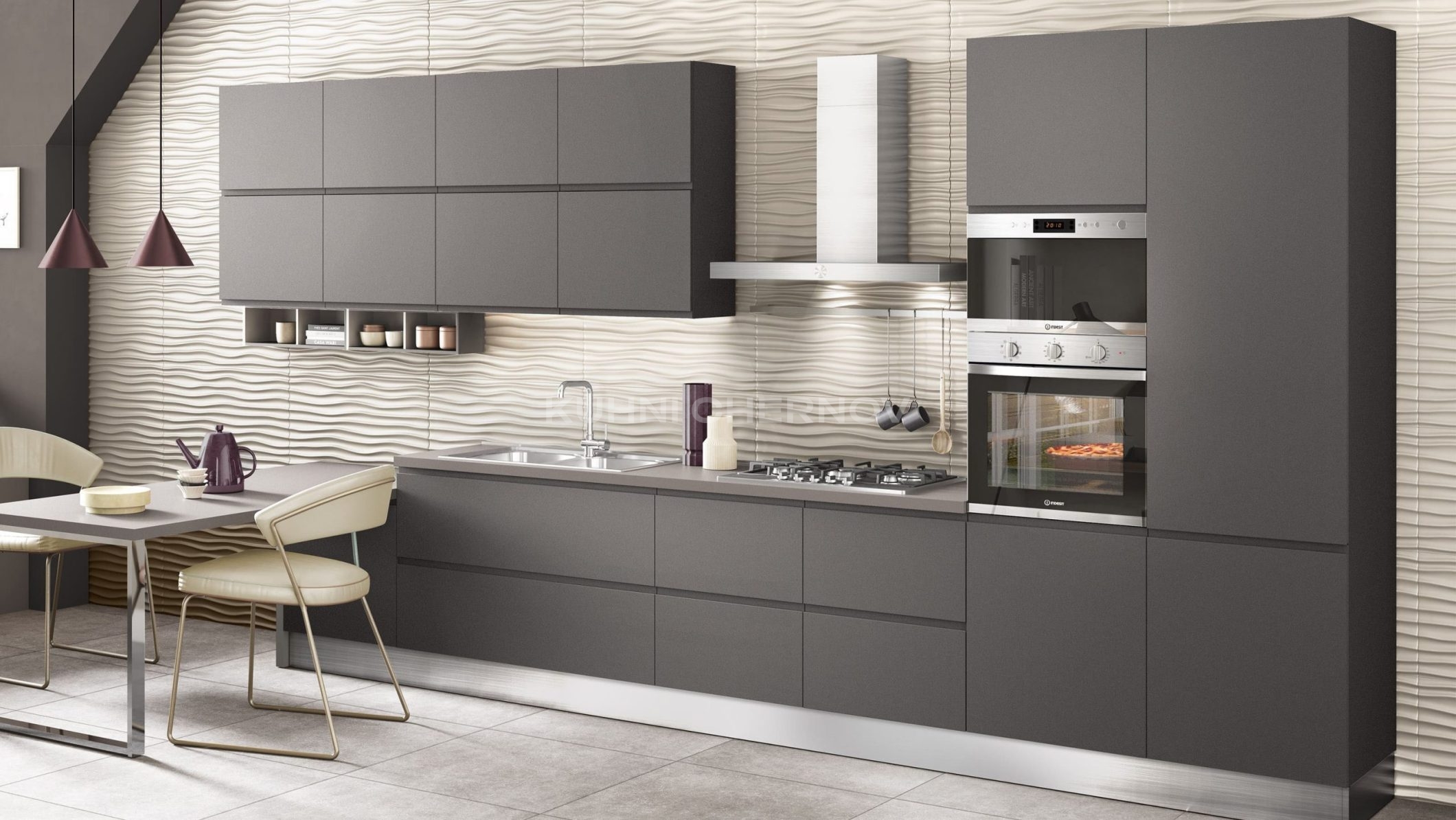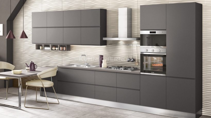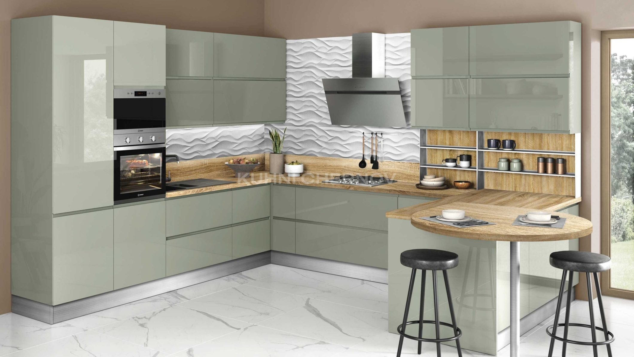 Лоретта — это серия кухонь с фасадами из эмали: гладкими и рифлёными. Сочетание текстур и лаконичных форм создаёт выразительный, современный образ с лёгким налётом ар-деко.