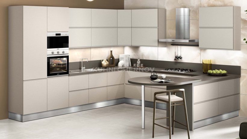 Кухня Лоретта изготовлена из МДФ толщиной 19 и 22 мм, покрытого прочной и эстетичной эмалью. Такая технология обеспечивает идеально гладкую поверхность, устойчивую к воздействию влаги и ультрафиолета, а также позволяет реализовать сложные формы — от гладких фасадов до рельефных элементов.