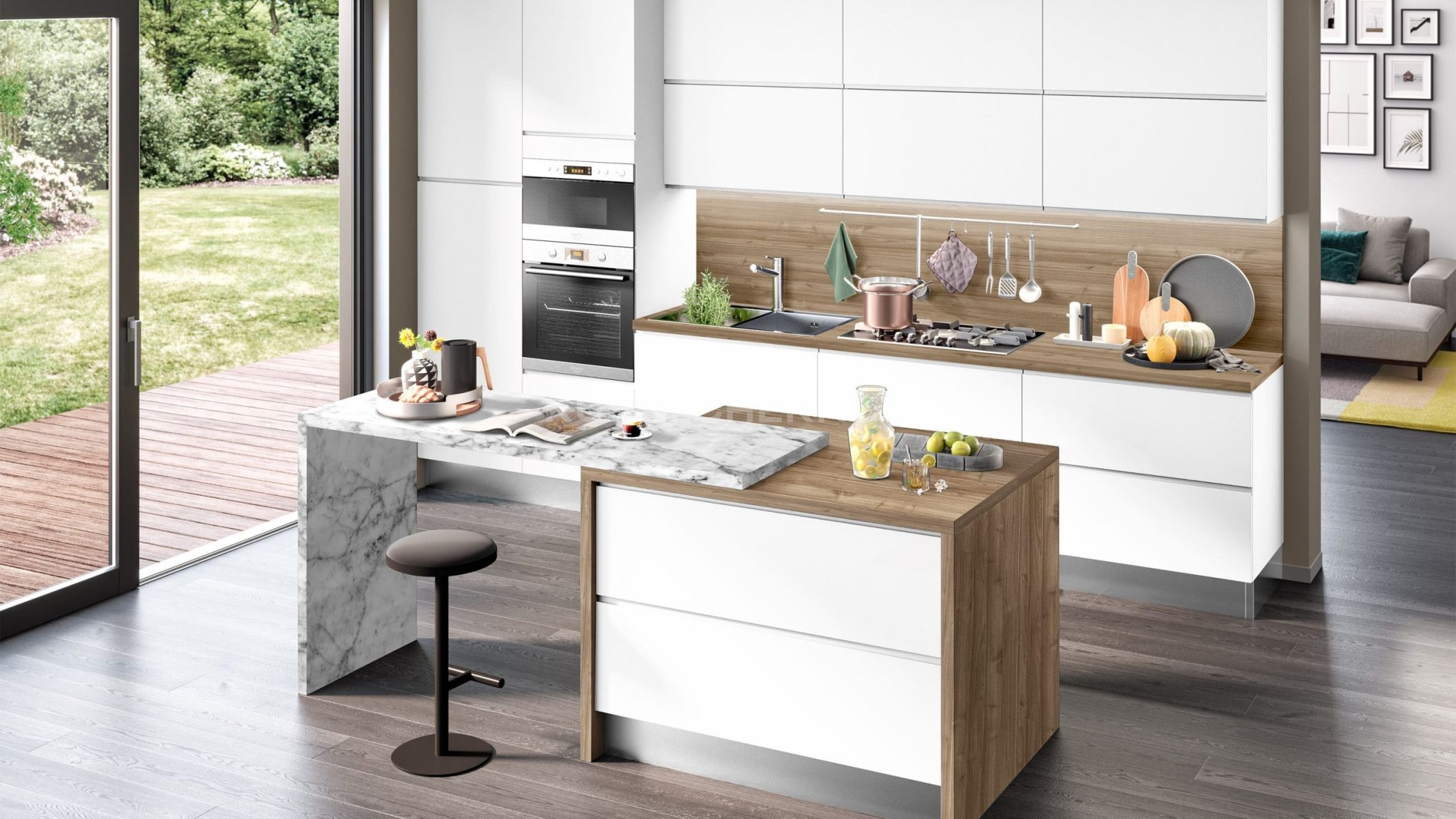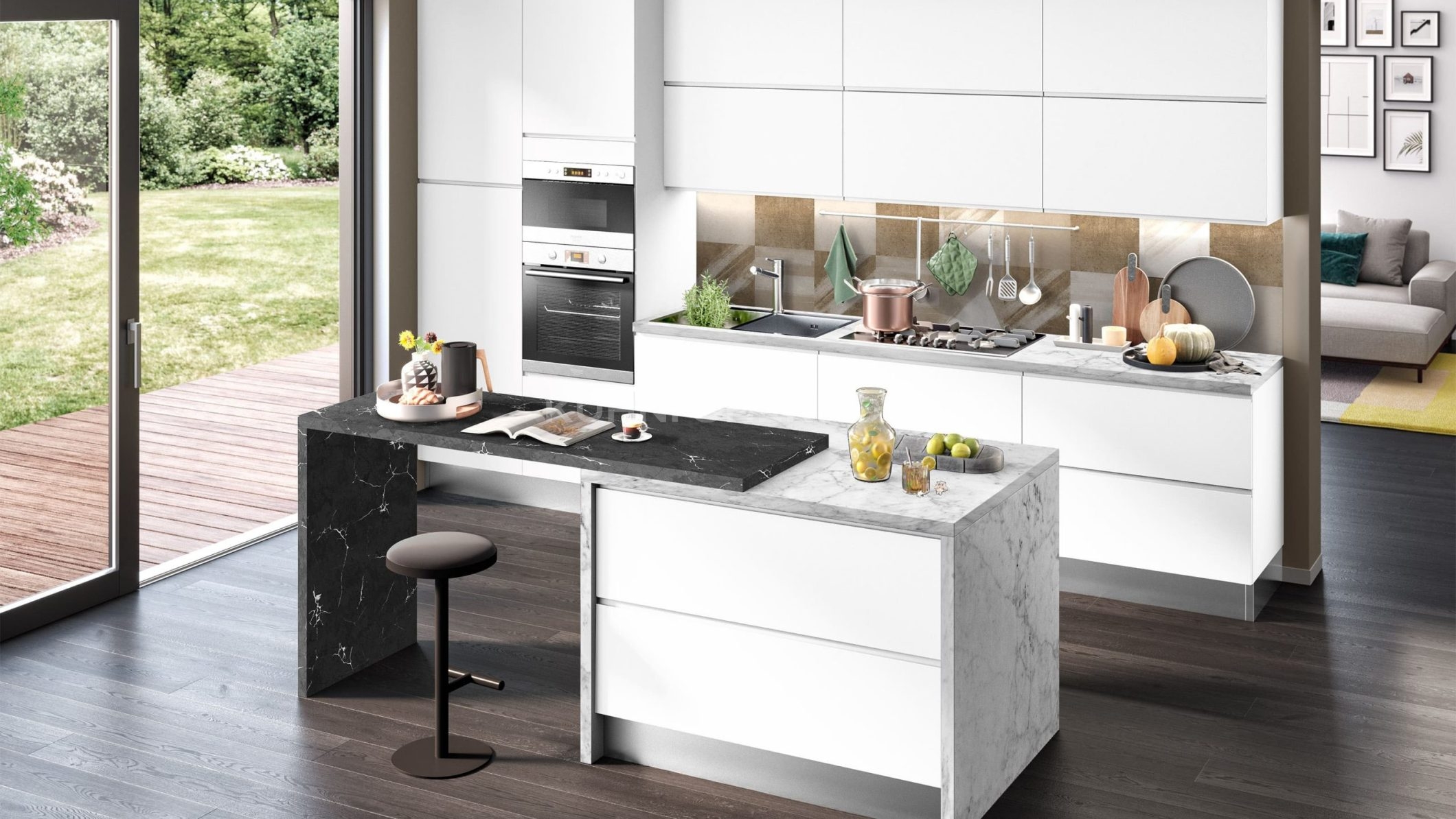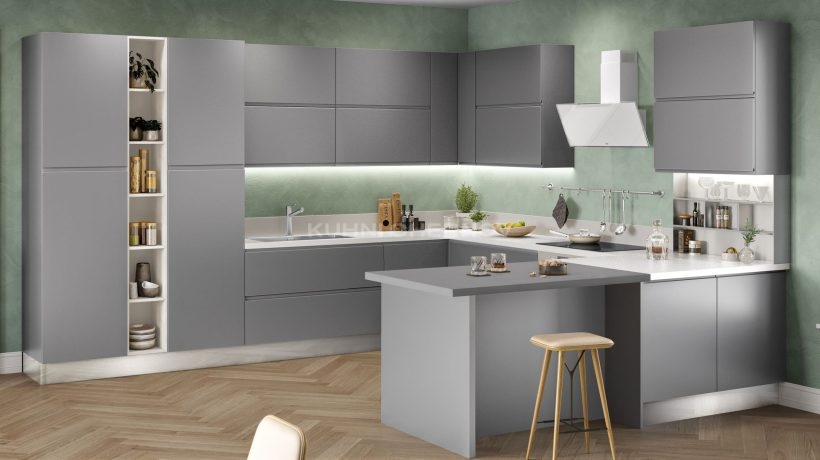 Лоретта — это серия кухонь с фасадами из эмали: гладкими и рифлёными. Сочетание текстур и лаконичных форм создаёт выразительный, современный образ с лёгким налётом ар-деко.