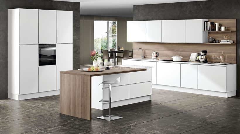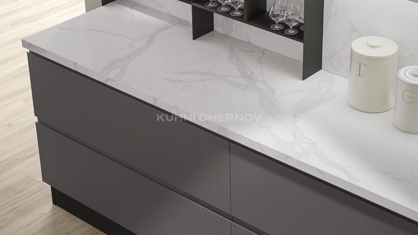 Кухня Лоретта изготовлена из МДФ толщиной 19 и 22 мм, покрытого прочной и эстетичной эмалью. Такая технология обеспечивает идеально гладкую поверхность, устойчивую к воздействию влаги и ультрафиолета, а также позволяет реализовать сложные формы — от гладких фасадов до рельефных элементов.