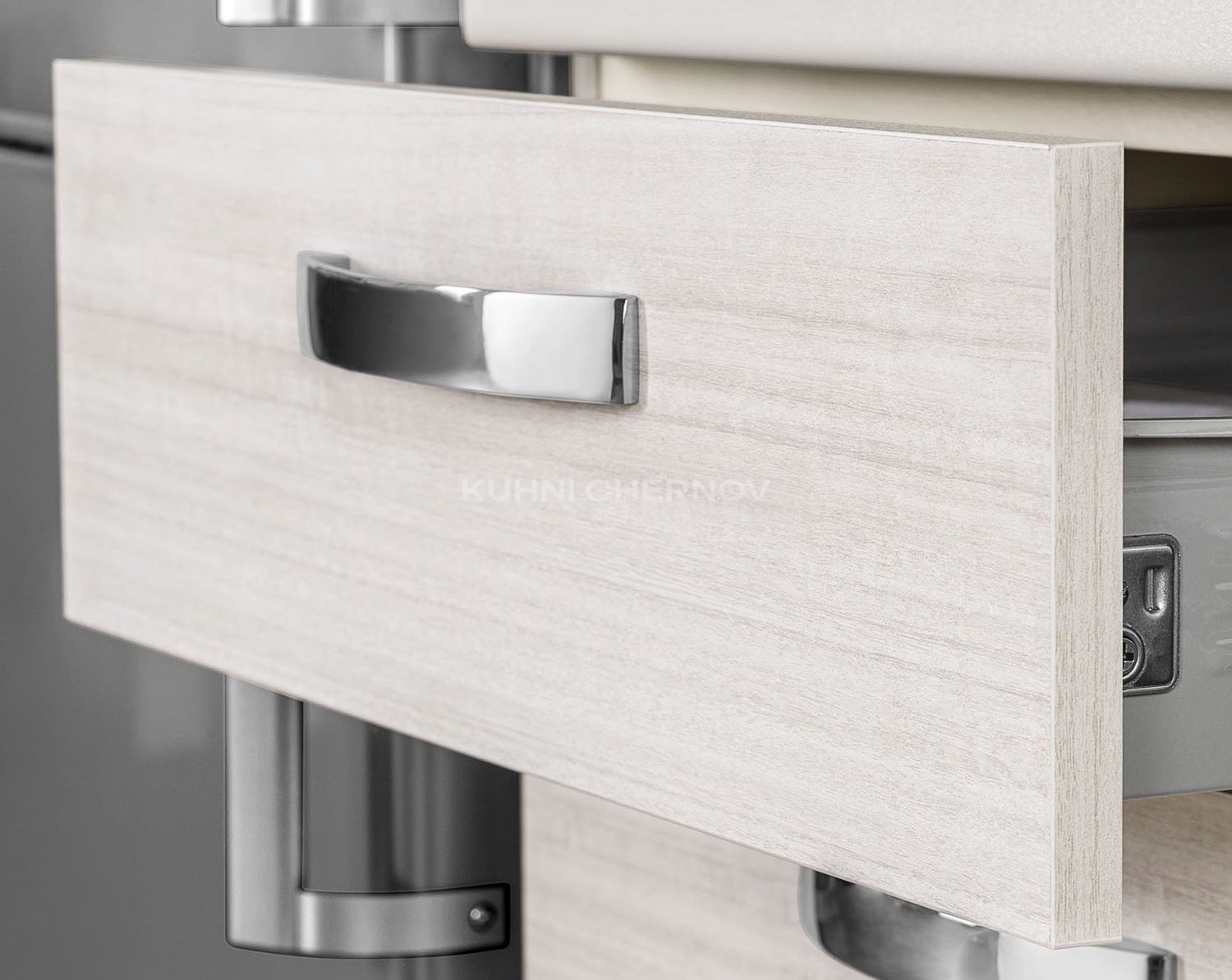 Техна — современная кухня, изготовленная из ЛДСП ведущих производителей — Egger и Kronospan. Качественное кромление и аккуратная обработка торцов обеспечивают высокую износостойкость, долговечность и безупречный внешний вид фасадов.
