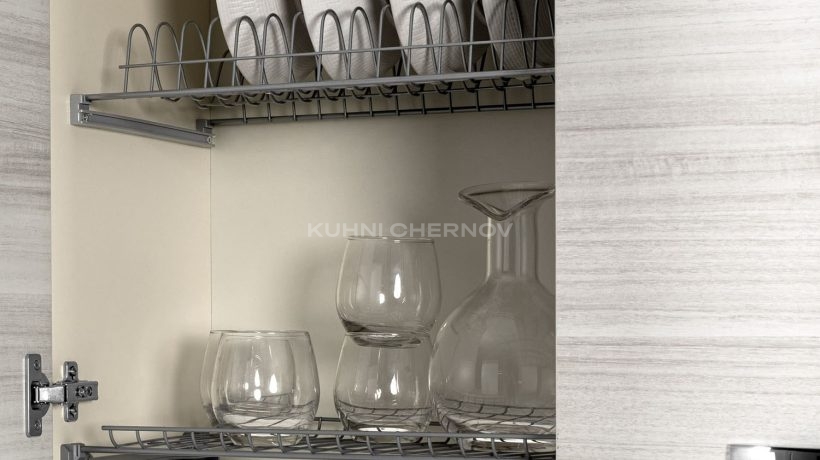 Кухня укомплектована лучшей фурнитурой по вашему выбору: петли с доводчиками, ящики полного выдвижения с системой soft close, подъёмные механизмы, бутылочницы, внутренние разделители и подсветка от ведущих мировых производителей.