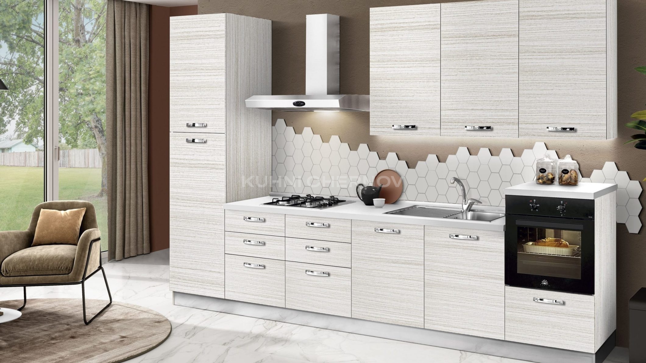 Техна — современная кухня, изготовленная из ЛДСП ведущих производителей — Egger и Kronospan. Качественное кромление и аккуратная обработка торцов обеспечивают высокую износостойкость, долговечность и безупречный внешний вид фасадов.