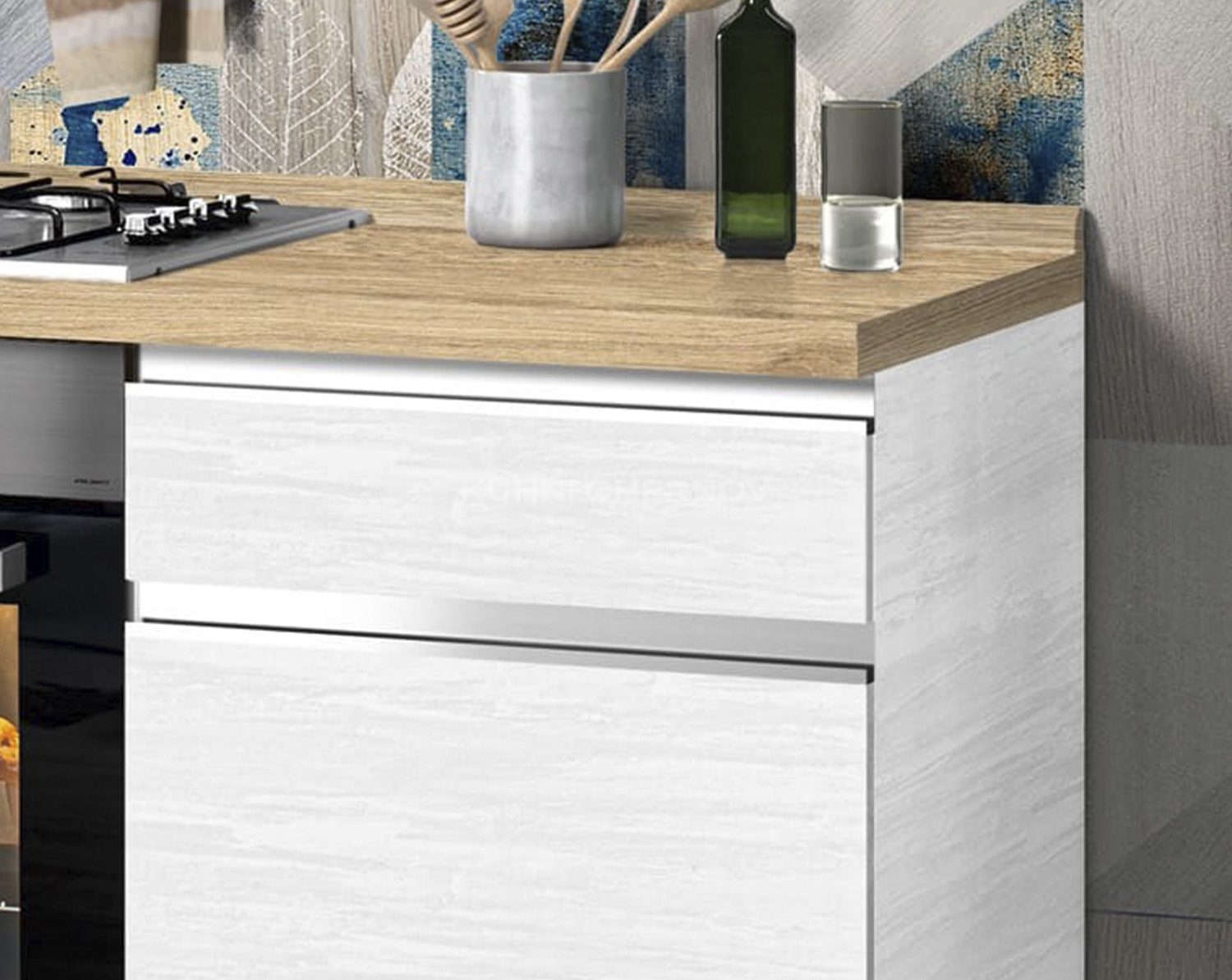 Техна — современная кухня, изготовленная из ЛДСП ведущих производителей — Egger и Kronospan. Качественное кромление и аккуратная обработка торцов обеспечивают высокую износостойкость, долговечность и безупречный внешний вид фасадов.