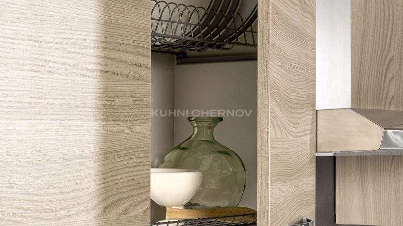 Кухня укомплектована лучшей фурнитурой по вашему выбору: петли с доводчиками, ящики полного выдвижения с системой soft close, подъёмные механизмы, бутылочницы, внутренние разделители и подсветка от ведущих мировых производителей.