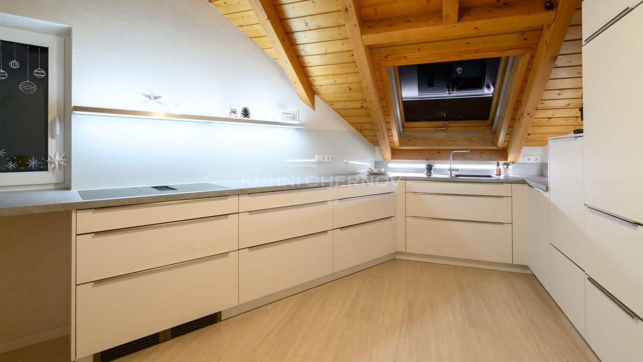 Кухня под наклонной крышей