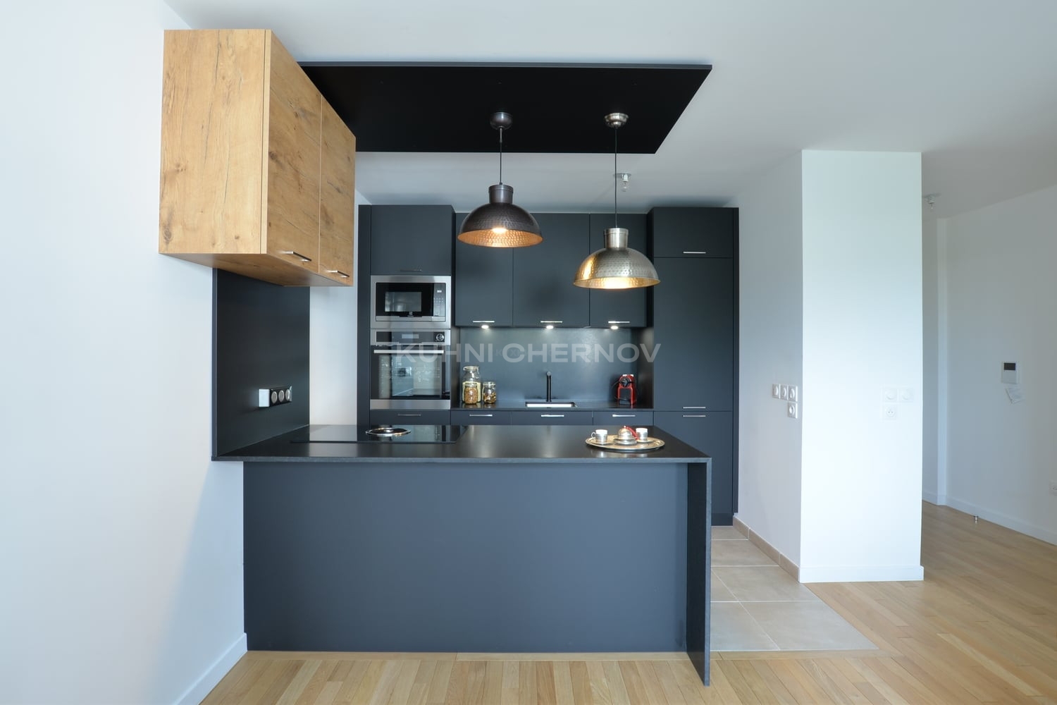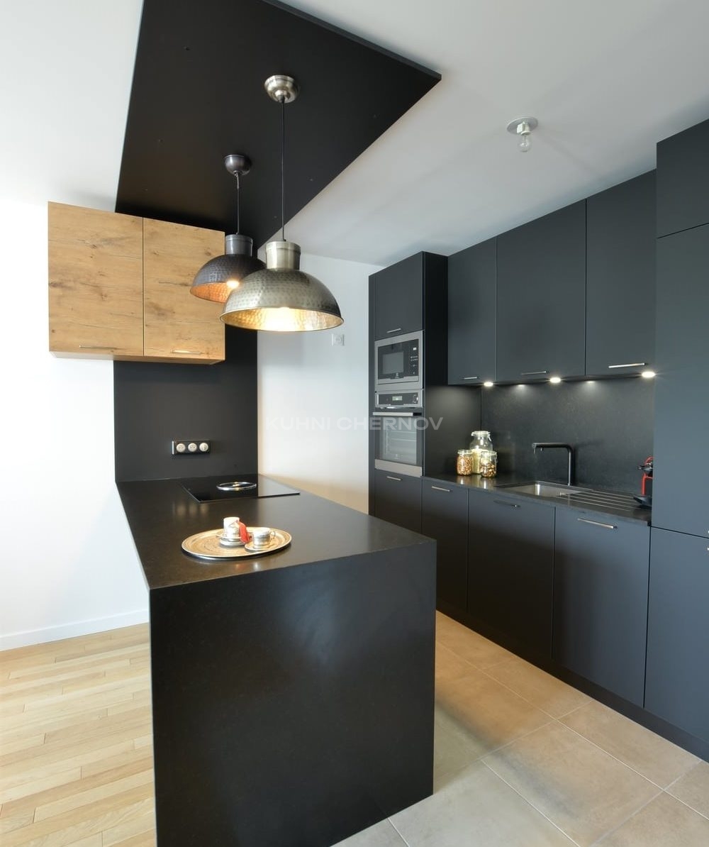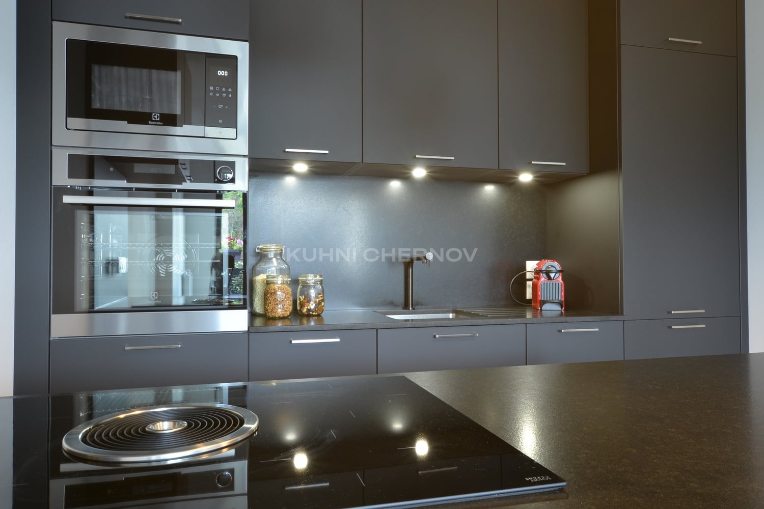 Кухня с ультраматовой черной отделкой, установленная специалистами интернет-магазина «Кухни Чернов».
