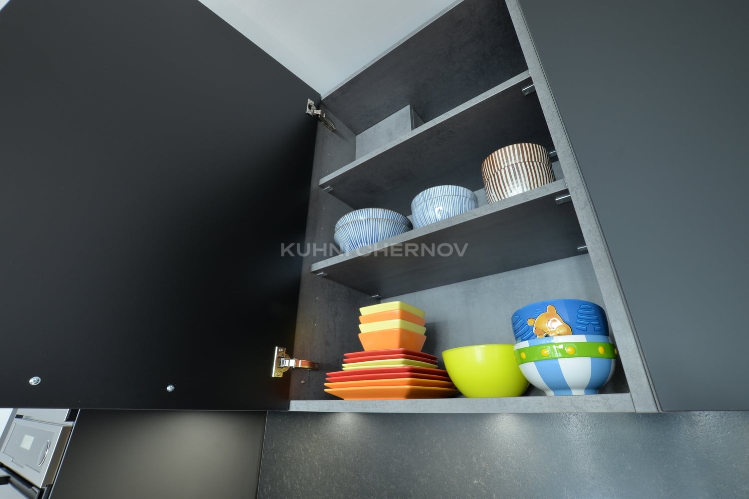 Эта модель воплощает современную эстетику — глубокий матовый чёрный цвет придаёт пространству выразительность и строгость, а гладкие фасады без лишних деталей подчёркивают лаконичный стиль.