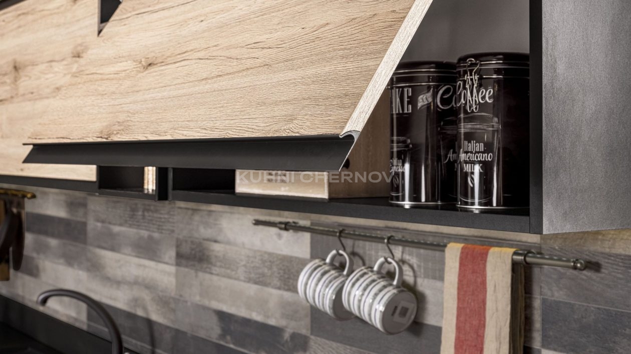 - лофт — матовые поверхности, открытые полки, металлическая фурнитура;