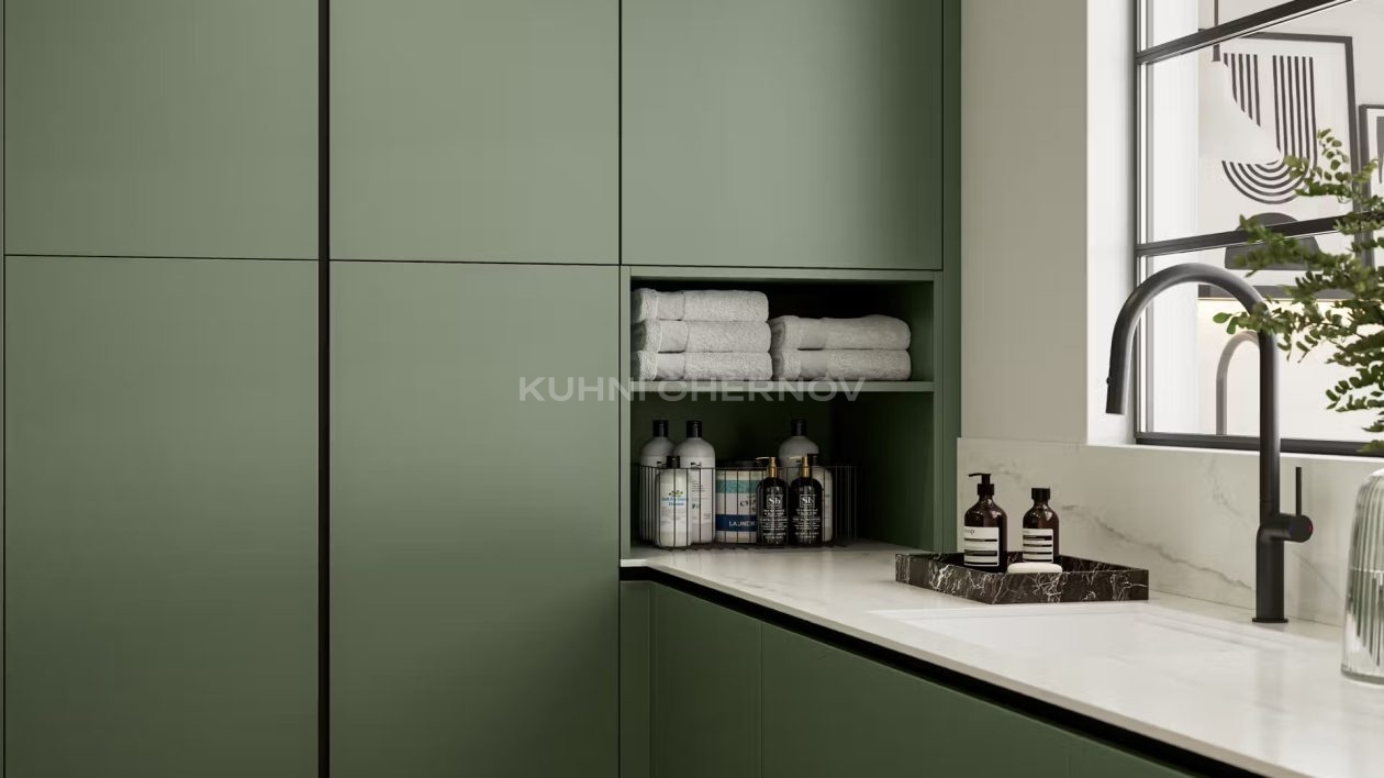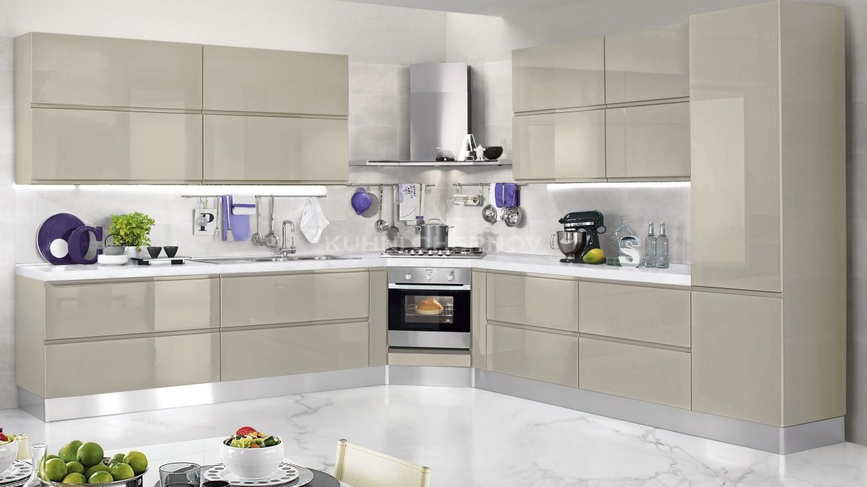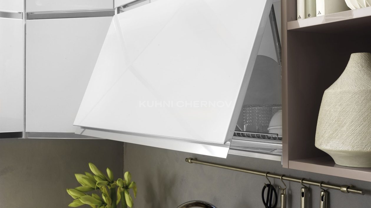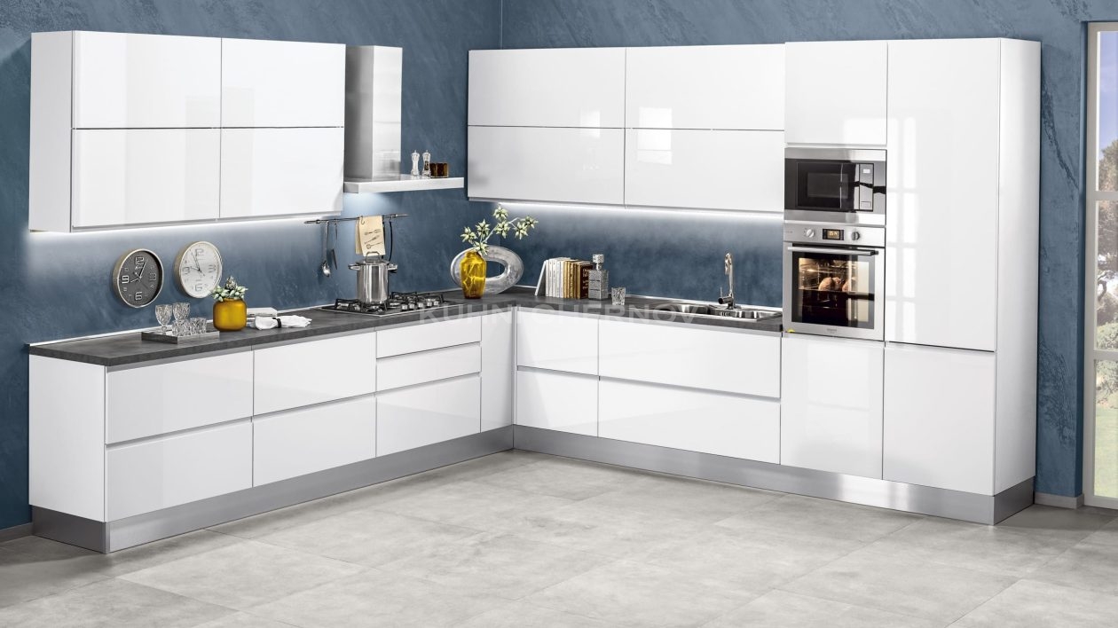 - минимализм — фасады без ручек, встроенные системы открывания, монохромная палитра;