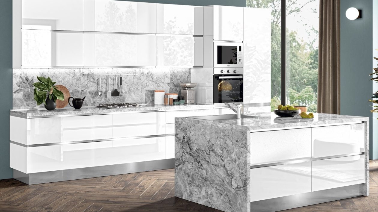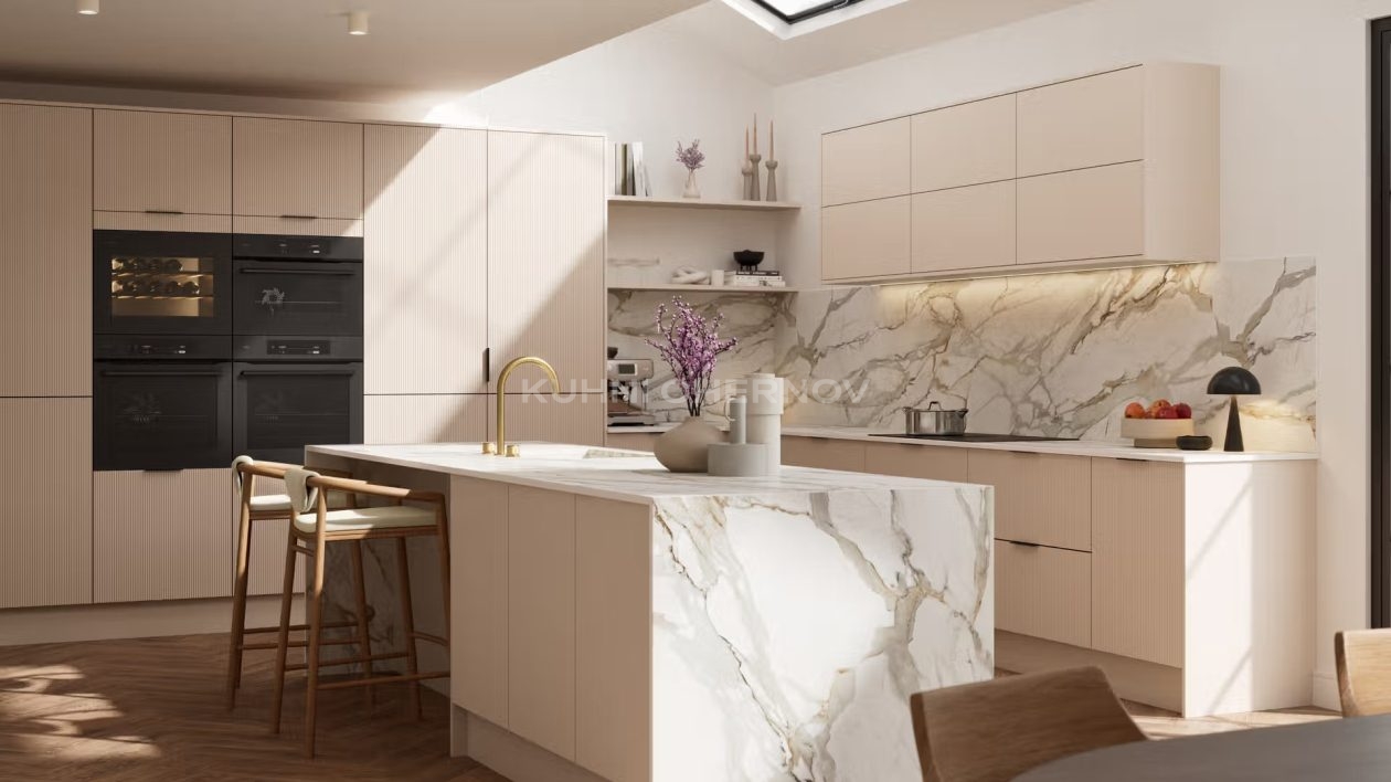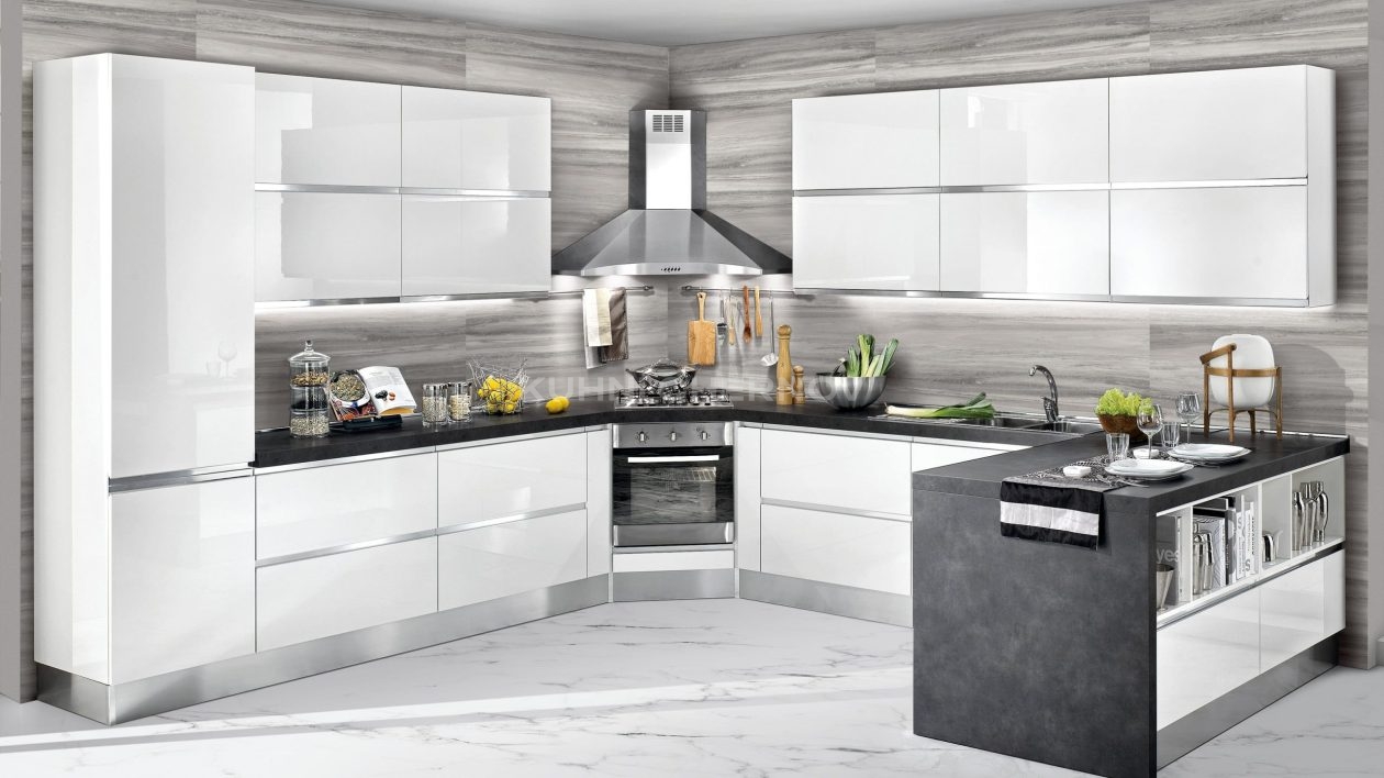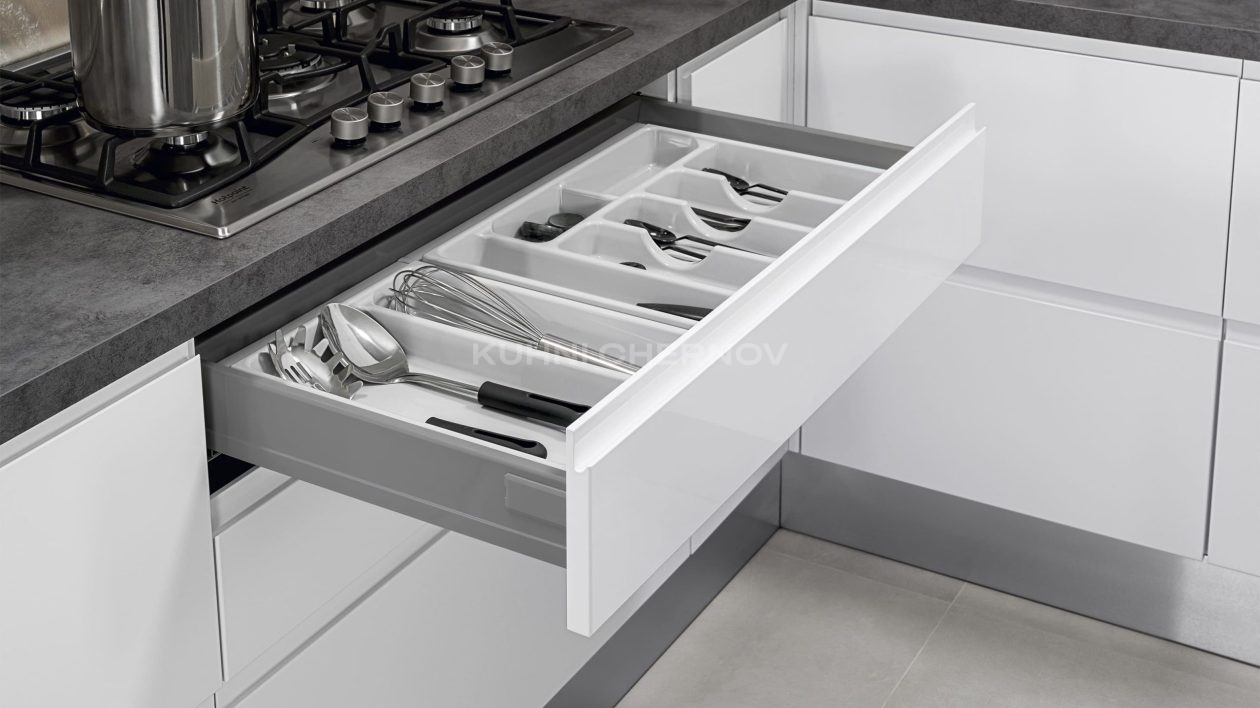 - минимализм — фасады без ручек, встроенные системы открывания, монохромная палитра;
