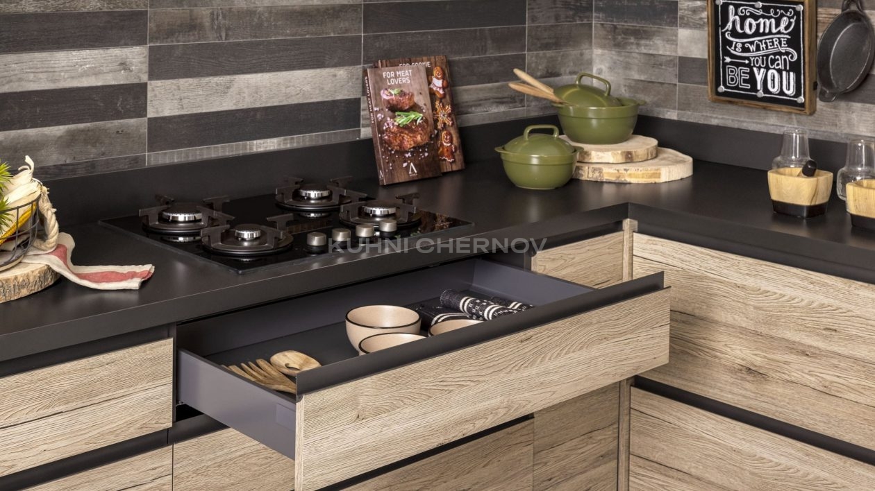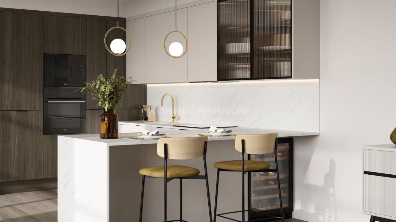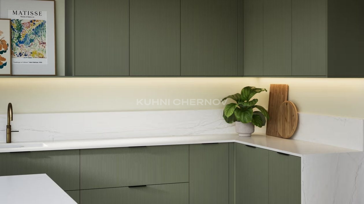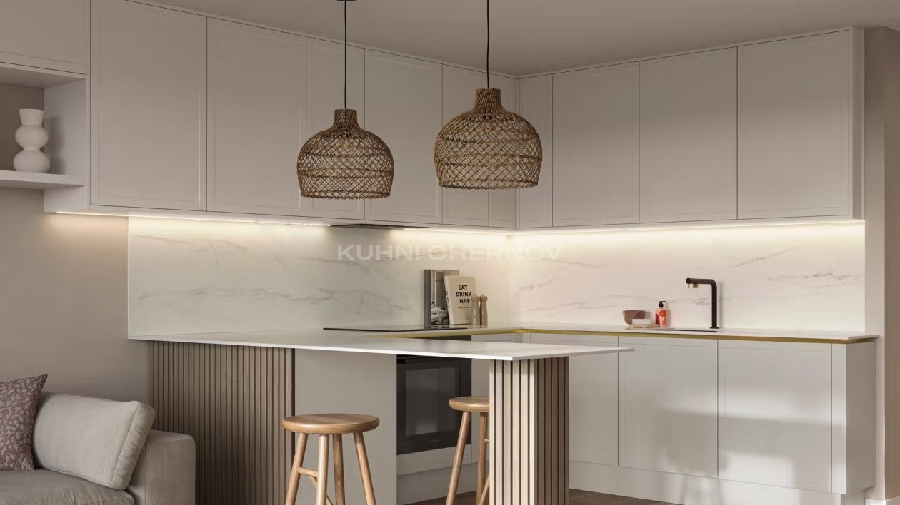 Компания «Кухни Чернов» предлагает более 100 цветов и текстур, включая фотопечать и двухцветные комбинации. Бесплатный дизайн проект кухни позволяет увидеть, как гарнитур будет смотреться именно в вашем интерьере. Через 5–7 лет вы сможете заменить только фасады, сохранив каркас — это экономия до 60% бюджета на обновление кухни.
