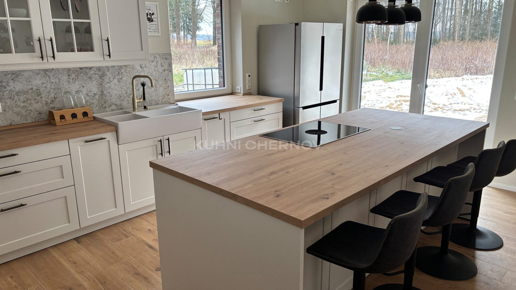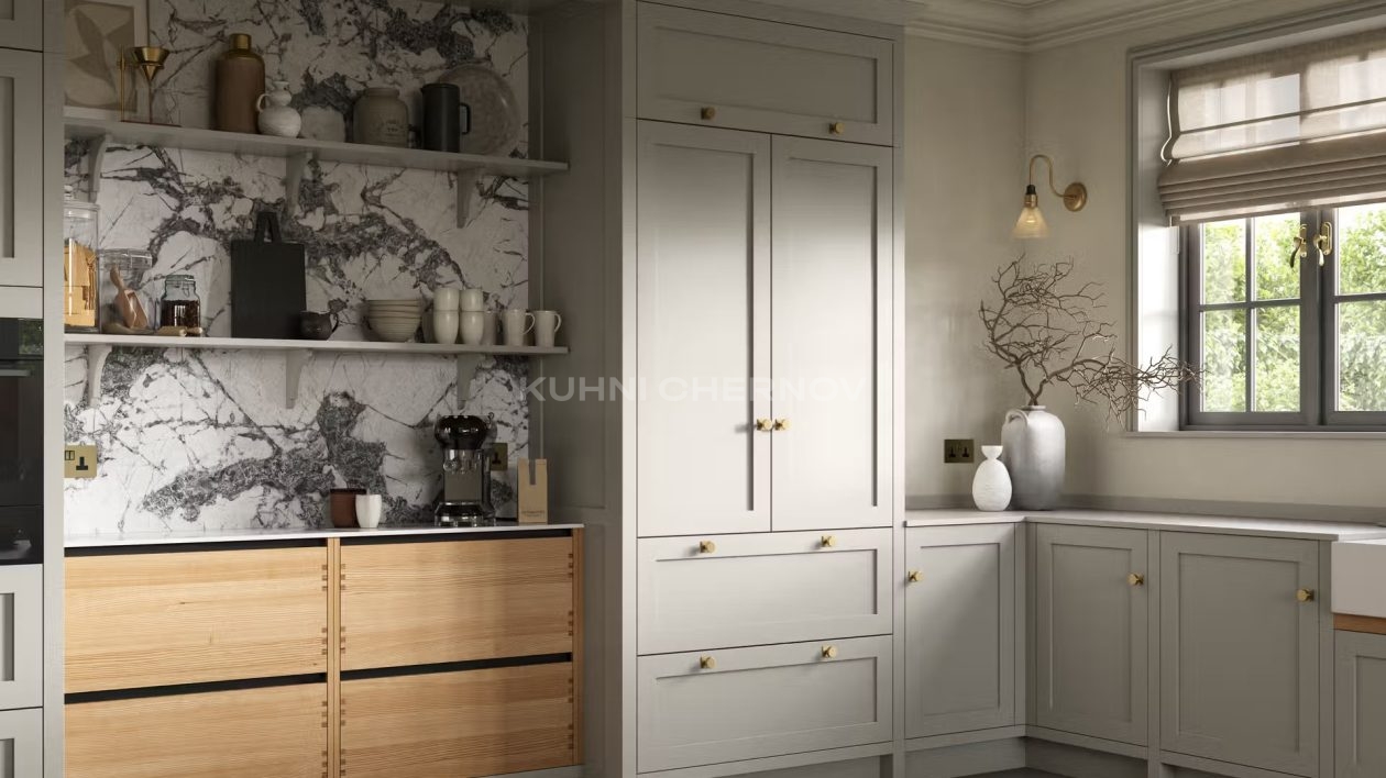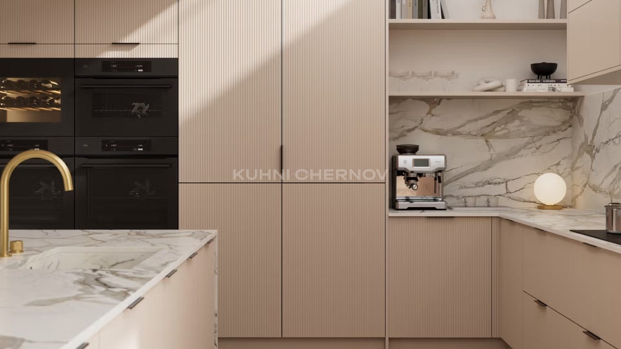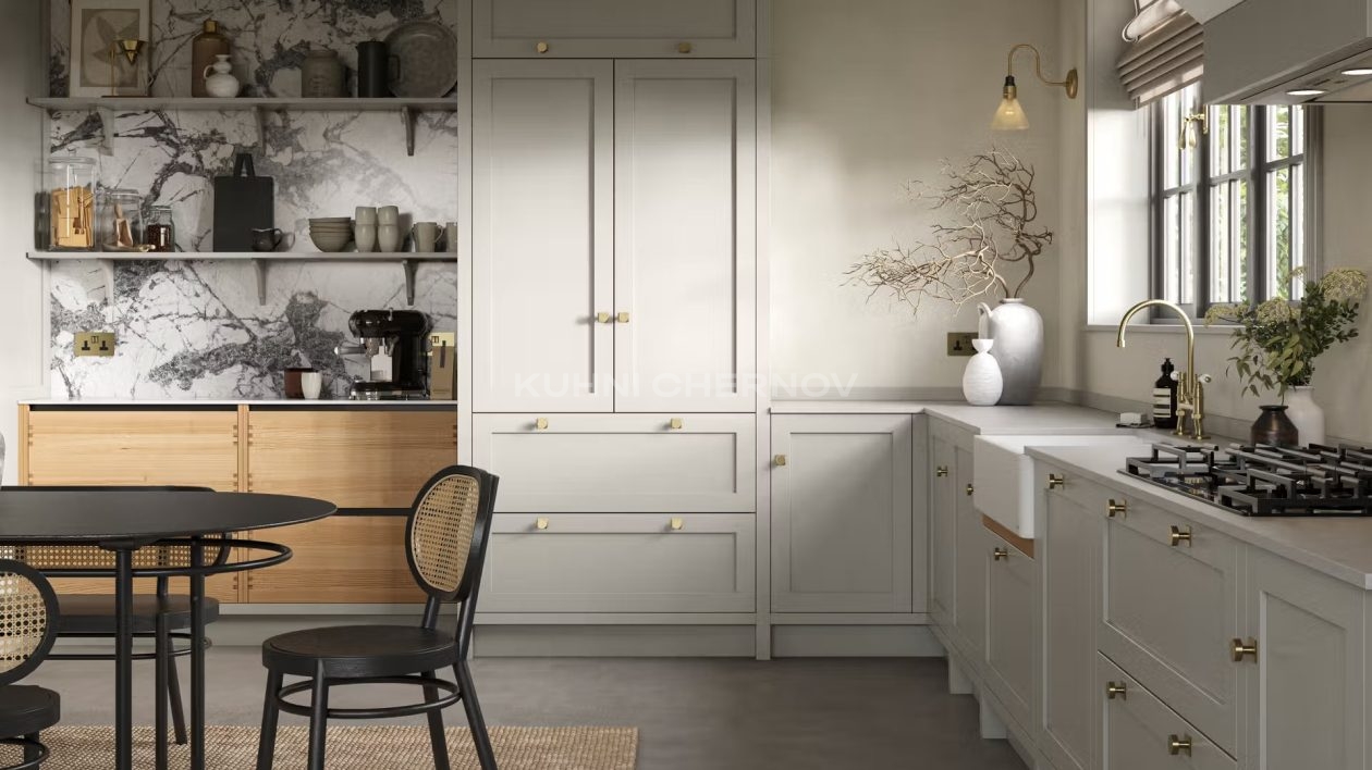 Компания «Кухни Чернов» предлагает более 100 цветов и текстур, включая фотопечать и двухцветные комбинации. Бесплатный дизайн проект кухни позволяет увидеть, как гарнитур будет смотреться именно в вашем интерьере. Через 5–7 лет вы сможете заменить только фасады, сохранив каркас — это экономия до 60% бюджета на обновление кухни.